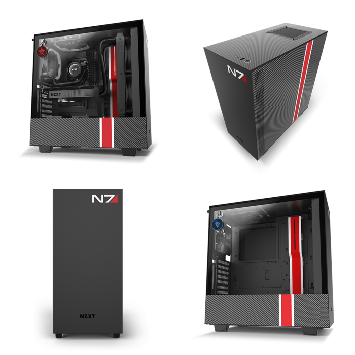 NZXT H510i Mass Effect to obudowa midi tower opracowana wspólnie ze studiem BioWare. Bazę w barwach włókna węglowego przełamano czerwonymi i białymi pasami. Mają one naśladować kultową, dostępną w grze zbroję N7. Tym samym gracze mają okazję pokazać swoją pasję i zbudować PC zawsze gotowy do bitwy.