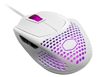 Cooler Master MM720 to mysz dla graczy, którzy szukają lekkości i precyzji. Charakterystyczna, perforowana konstrukcja waży niespełna 50 gramów, a jej wnętrze skrywa sensor PixArt PMW3389 o rozdzielczości 16000 DPI. Z kolei klasyczne przełączniki zastąpiono optycznymi. Nie dość, że mają one zapewnić niemal zerowy czas odbicia (tzw. debounce time) i być nawet trzykrotnie szybsze od tradycyjnych, to ich trwałość jest szacowana na 70 milionów kliknięć.