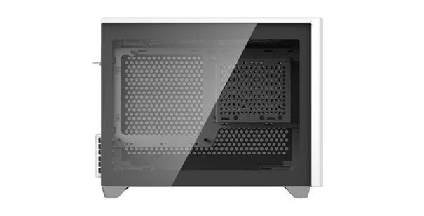 Wewnątrz MasterBox NR200P White jest także przestrzeń na chłodzenia AiO. Producent przewidział trzy miejsca na chłodnice, z których największa może mieć do 280 milimetrów długości. Tradycjonaliści mogą z kolei zainstalować do siedmiu wentylatorów (dwa są w komplecie) i aktywny cooler procesora, którego wysokość może wynieść 153 milimetry w wersji ze szklanym oknem) lub 155 milimetrów w wariancie z perforowaną ścianką boczną.
