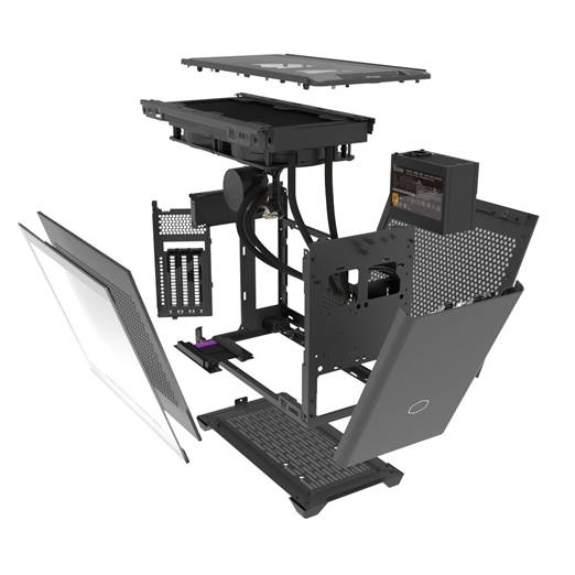 Wewnątrz obudowy MasterBox NR200P MAX można zamontować trzy dyski 2,5” i, opcjonalnie, do dwóch 3,5”. Platforma, do której jest przykręcana płyta główna, została zaprojektowana tak, aby dostęp do nośników M.2 zainstalowanych z tyłu był jak najłatwiejszy. Wentylowany panel, którym można zastąpić ten wykonany ze szkła, ma im z kolei zapewnić optymalne warunki termiczne. Podobnie jak w standardowym modelu NR200P, wersja MAX ma demontowalne wszystkie ścianki zewnętrzne i pakiet filtrów przeciwkurzowych.