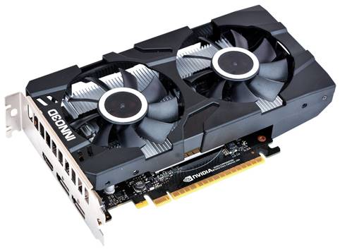 Model INNO3D GeForce GTX 1650 GDDR6 TWIN X2 posiada estetyczne dwuslotowe chłodzenie z dwoma wentylatorami. Karta graficzna jest firmowo podkręcona i pracuje ze standardowymi taktowaniami 1485 MHz, a w trybie Boost przyspiesza do 1620 MHz. Mimo zwiększonych zegarów na pokładzie nie ma żadnych dodatkowych portów zasilania.