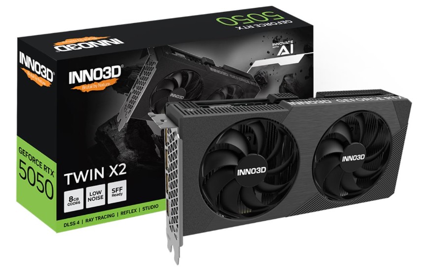 · INNO3D GeForce RTX 5050 TWIN X2: Standardowy model, zapewniający solidną wydajność i niezawodność w przystępnej cenie, idealny dla szerokiego grona użytkowników.