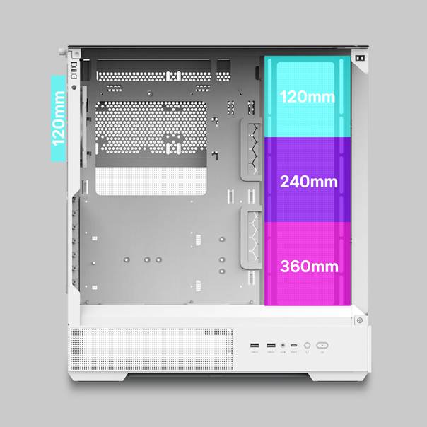 Konstrukcja umożliwia montaż karty graficznej o długości sięgającej 420 mm (wspornik GPU w pakiecie), również pozycji wertykalnej. Wystarczy doposażyć się we własny riser PCIe. Chłodzenie procesora powinno być nie wyższe niż 165 mm. W przypadku chłodzenia cieczą są dwie opcje: 120 mm na tyle lub do 360 mm na bocznej ścianie. Tym samym dla amatorów customowego chłodzenia wodą P40 Prism nie daje wielkiego pola do manewru.