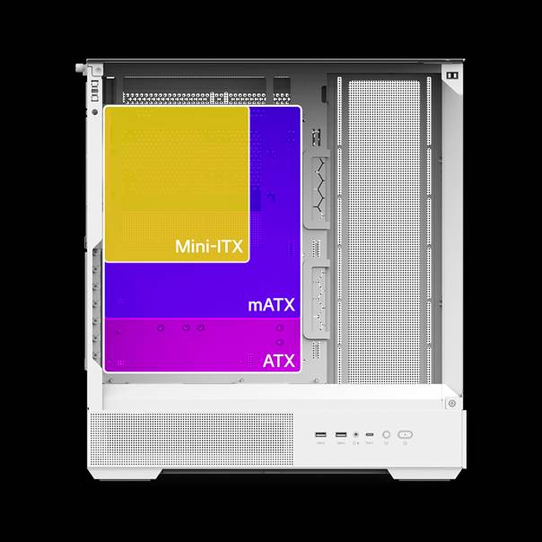 P40 Prism zaprojektowano w formacie mid-tower, co przełożyło się na zgodność z płytami głównymi w standardzie ATX, mATX oraz Mini-ITX. Producent nie przewidział opcji instalacji płyty głównych z złączami na rewersie (np. MSI Project Zero). Szkoda, bo przy tak daleko idącej ekspozycji opcja schowania przewodów zasilających znacząco podniosłaby ogólną wartość dodaną obudowy.
