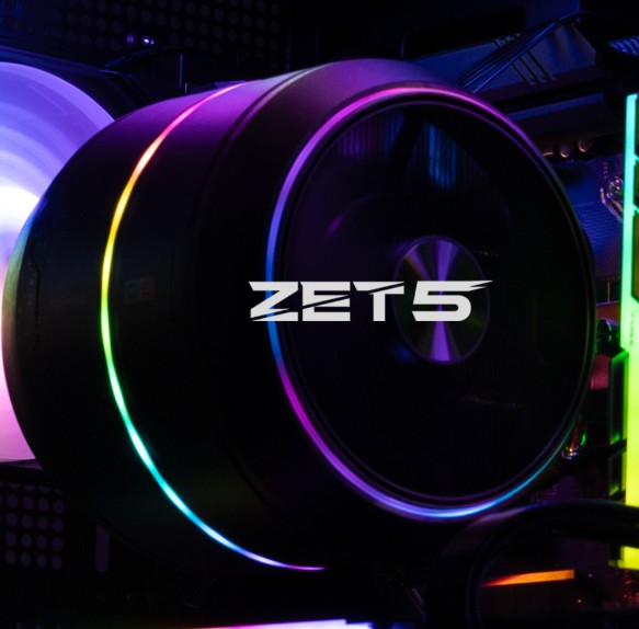 Zalman ZET 5 to niezwykle efektowne chłodzenie CPU. Producent postawił na unikalną konstrukcję inspirowaną silnikiem odrzutowym samolotu, która wyróżnia się wysokim przepływem powietrza, ale nie tylko. Całość wygląda niepowtarzalnie, a nawet nieco futurystycznie, zwłaszcza że na pokładzie nie zabrakło podświetlenia ARGB idealnie komponującego się z gamingowymi zestawami PC.