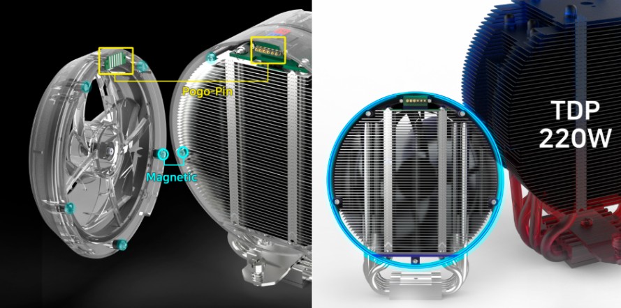 W modelu ZET 5 zastosowano także udoskonaloną podstawę RDTH (Reverse Direct Touch Heatpipe), która efektywnie przekazuje ciepło z procesora do rurek cieplnych, minimalizując straty termiczne. Dodatkowo na pokładzie ulokowano magnetyczne mocowanie z łączem pogo-pin, dzięki czemu instalacja coolera powinna być szybka i bezproblemowa.